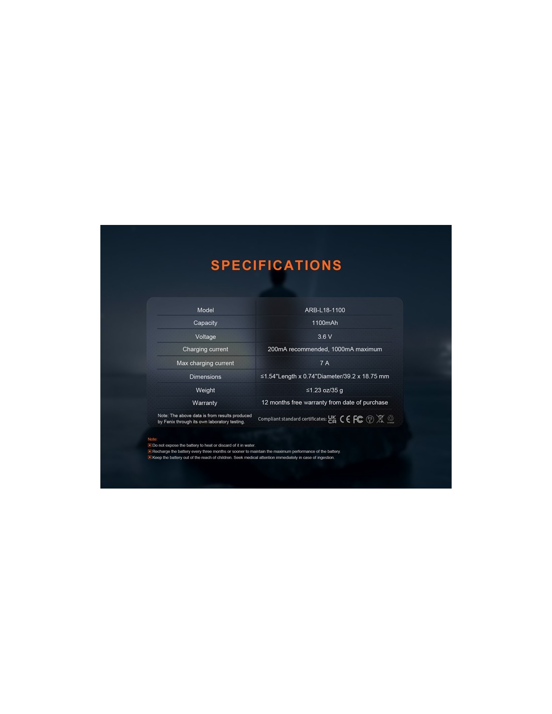 La nueva Fenix ARB-L18-1100P es una batería recargable de iones de litio especialmente diseñada para la linterna táctica GL19R-V2.0, GL22r y TK05R