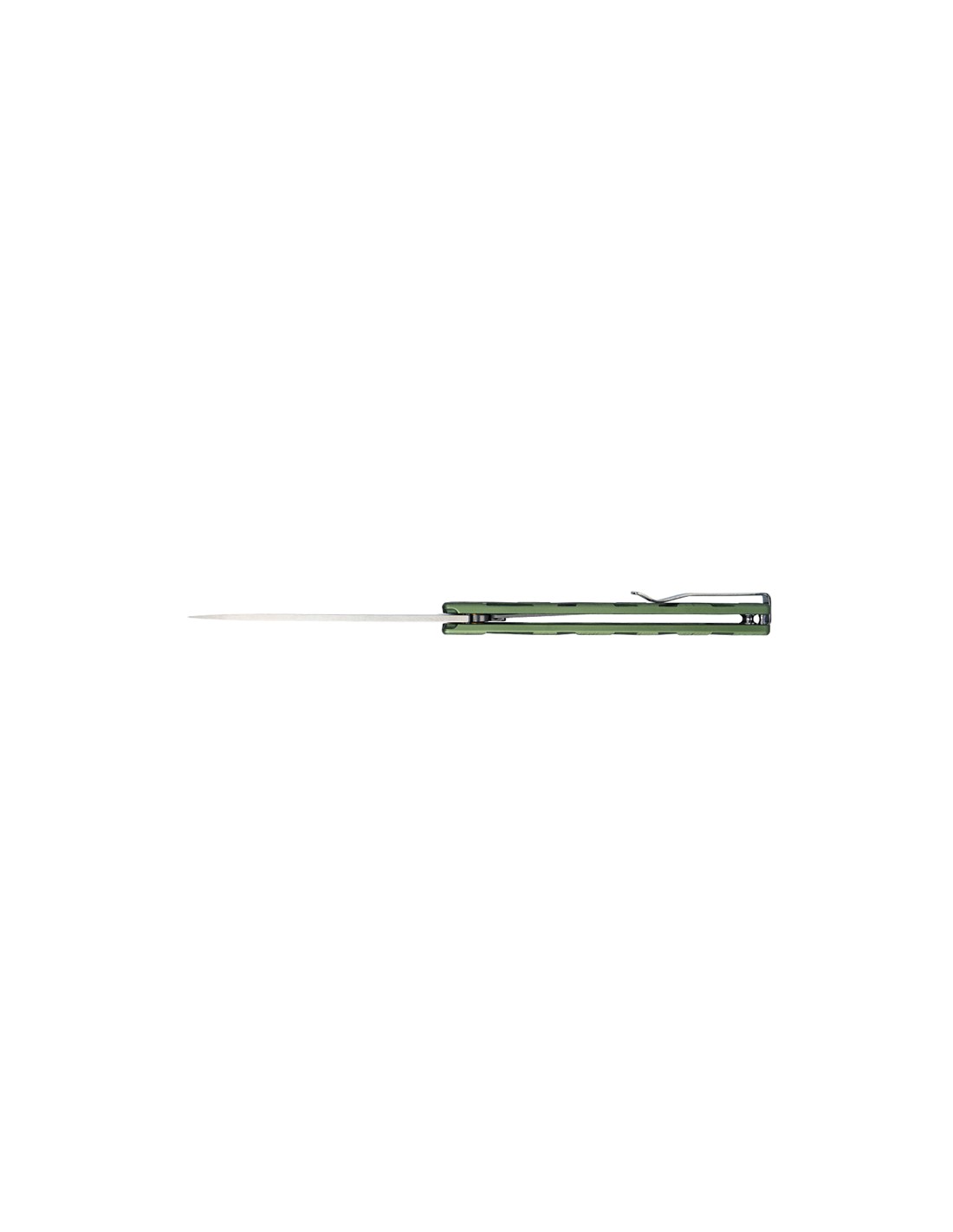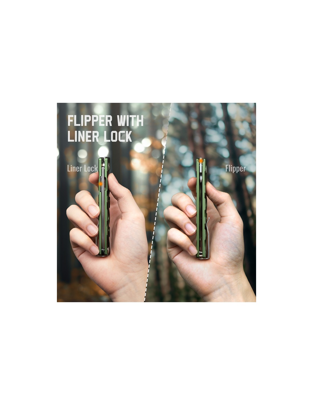 - Diseño sobrio y elegante: El acabado satinado de la hoja combinado con el mango verde oliva da como resultado una pieza sofisticada, funcional y con carácter táctico.