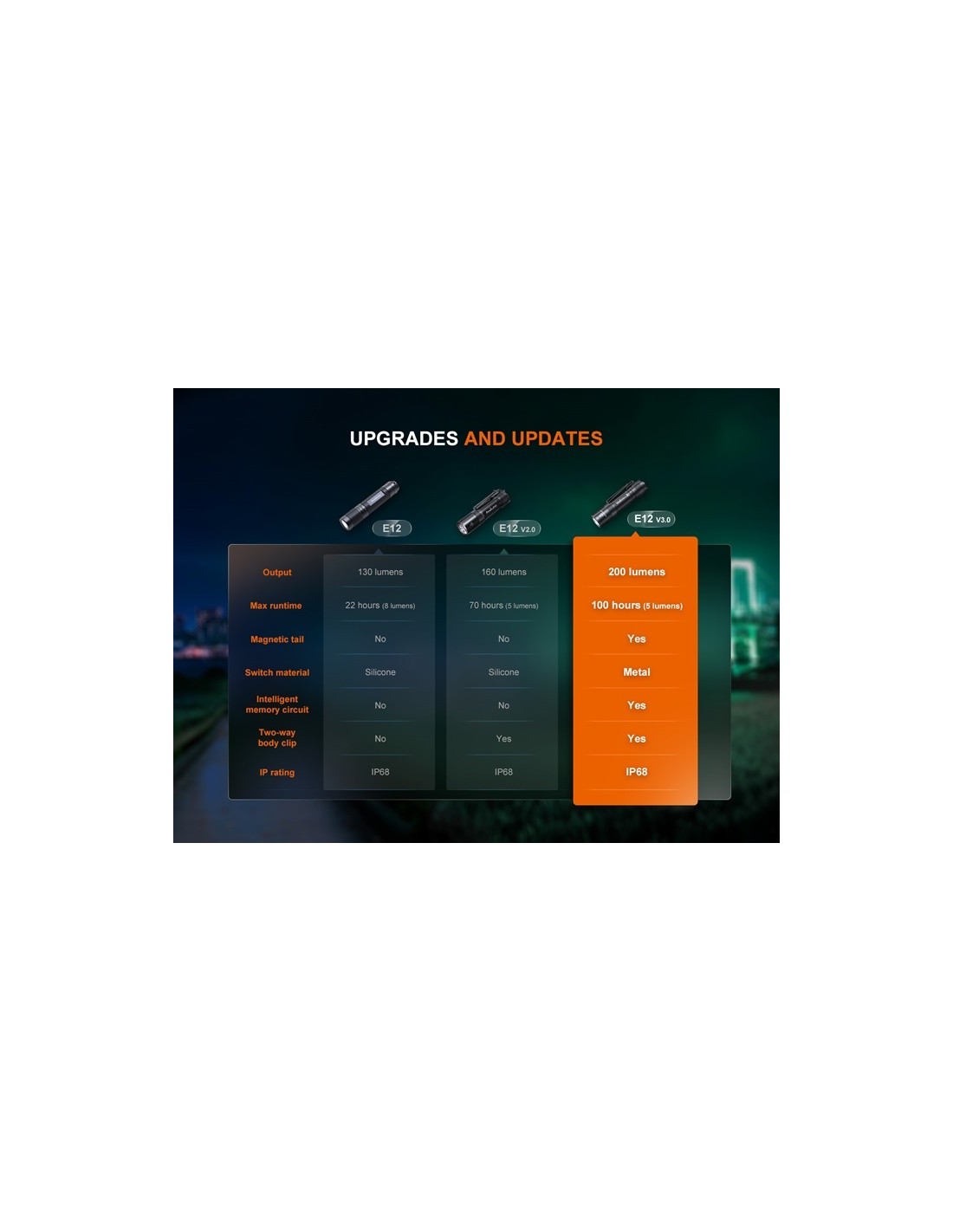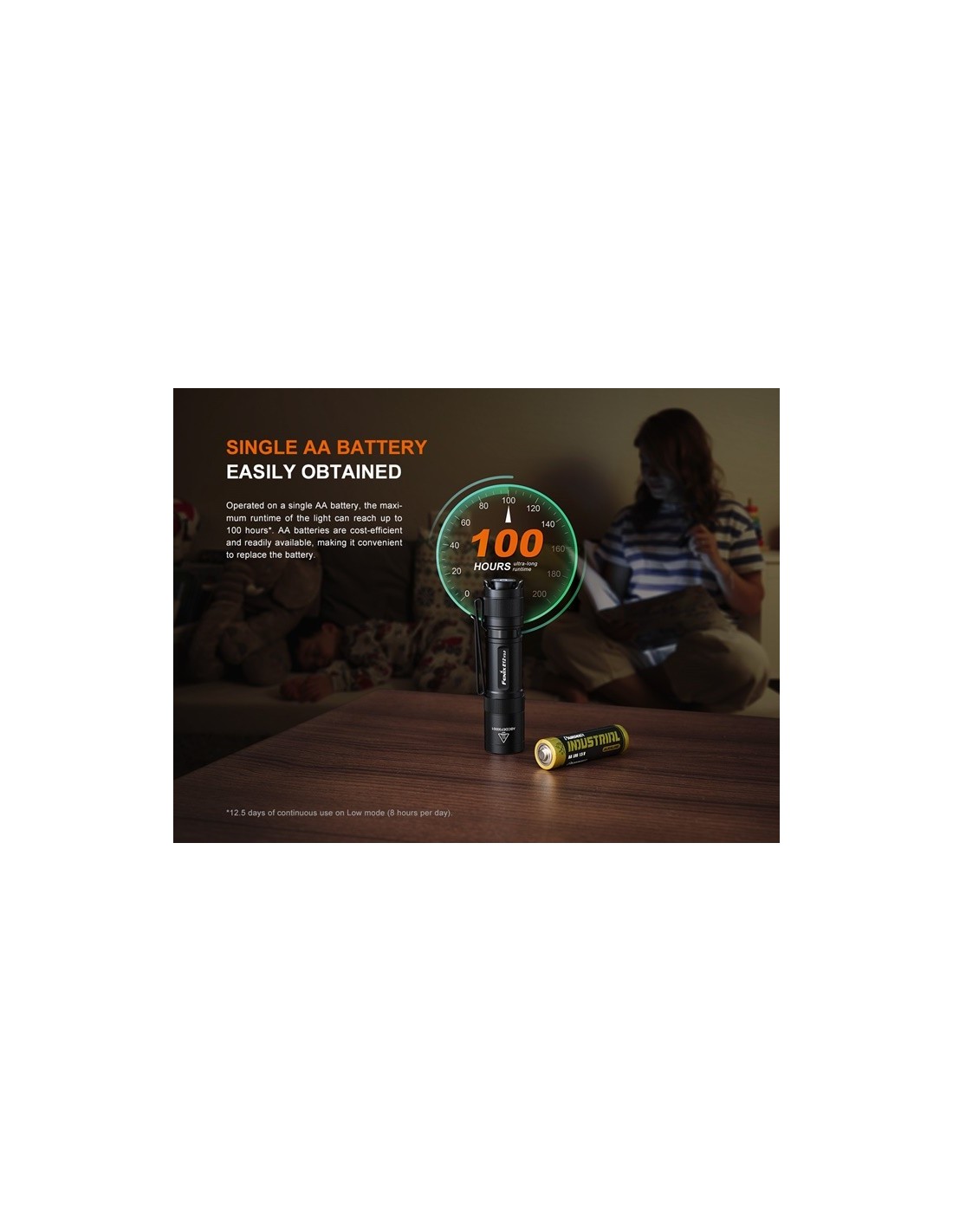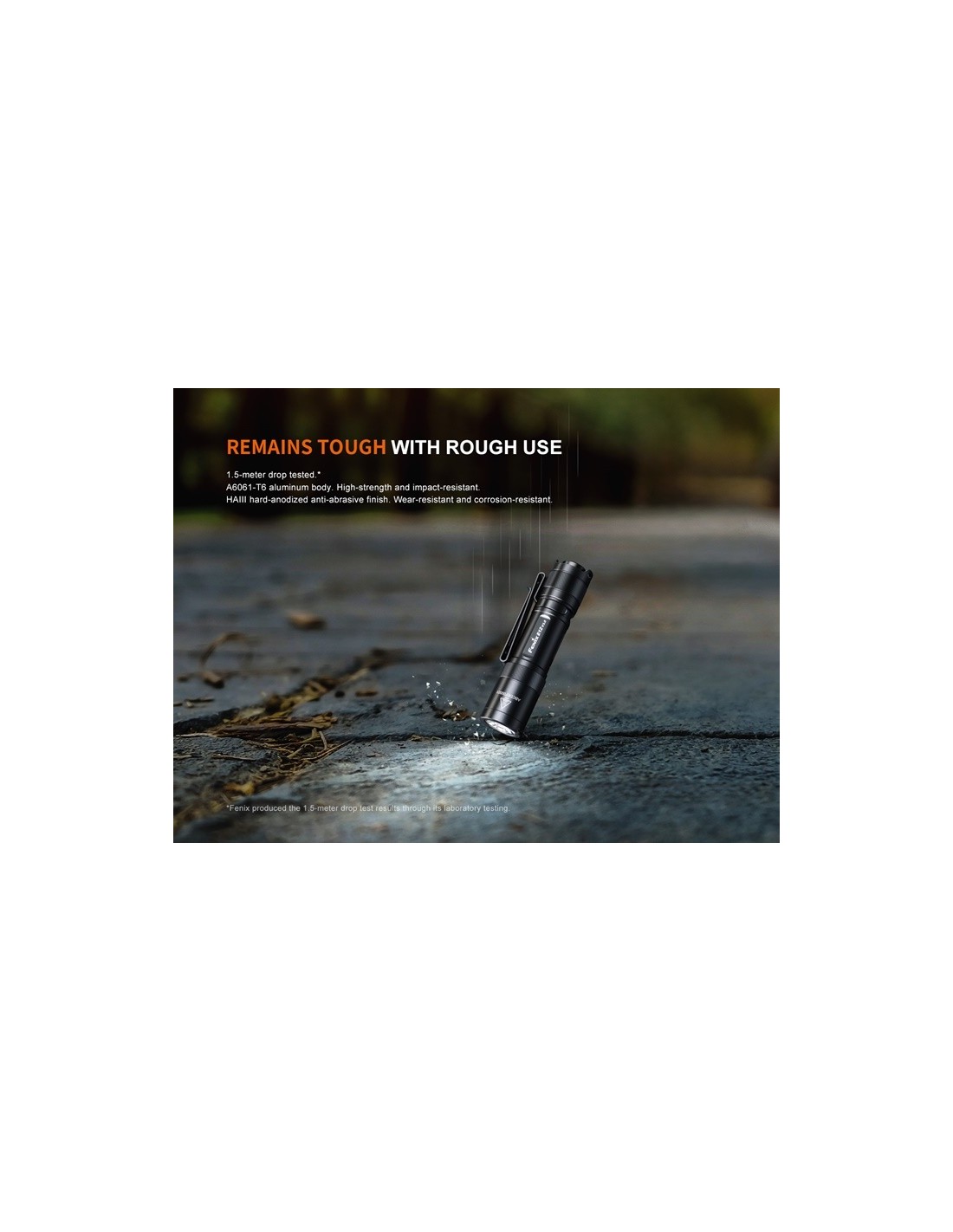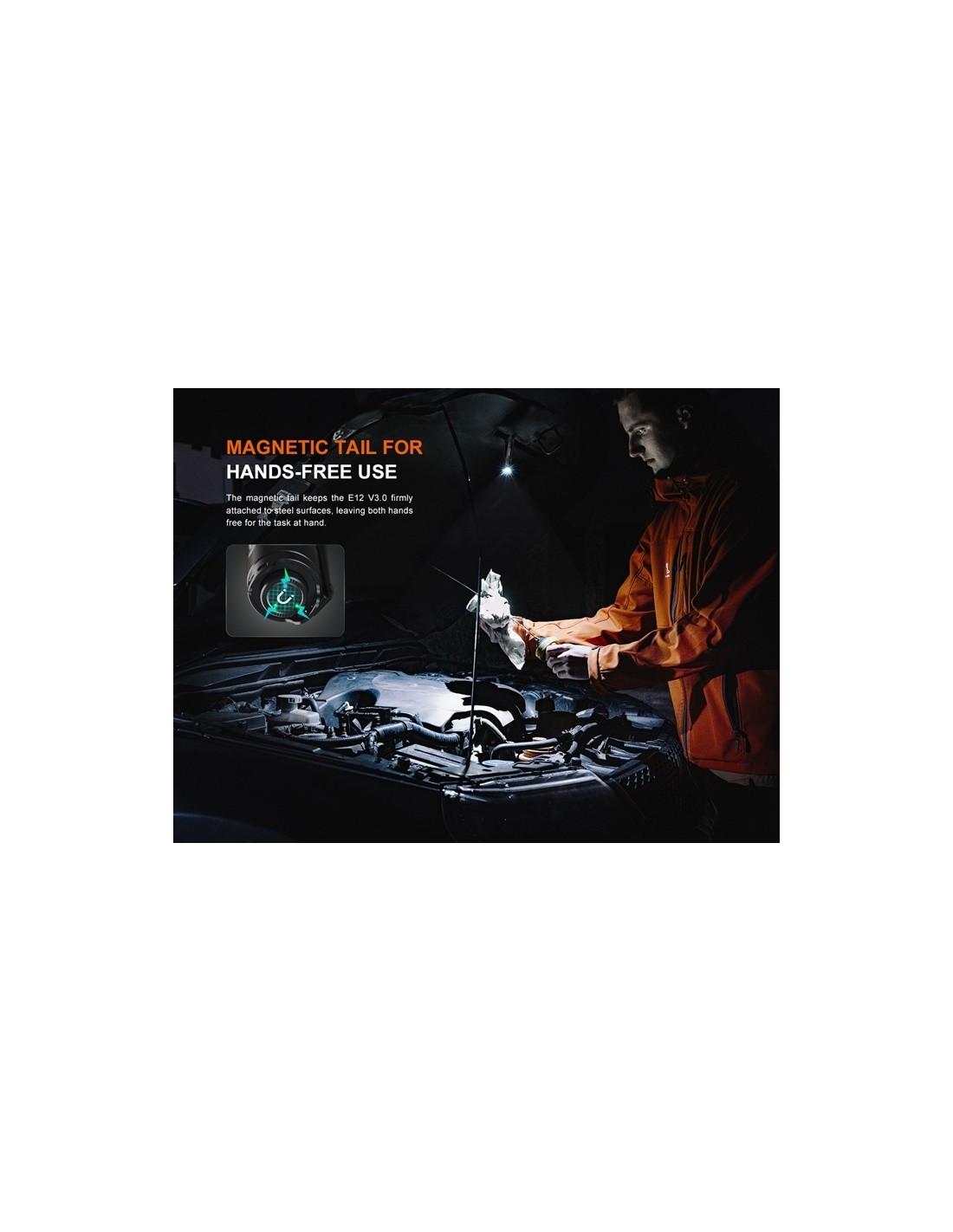 La nueva Fenix E12 V3.0 es una linterna EDC portátil y ligera, alimentada por una sola batería AA. La linterna tiene una potencia máxima de 200 lúmenes y puede lanzar un haz de luz de hasta 78 metros para satisfacer múltiples necesidades de iluminación. La energía de la batería no se consume en estado de espera, lo que proporciona energía suficiente para cada uso. El clip bidireccional para el cuerpo y la cola magnética permiten un uso cómodo y sin manos. Otras características destacadas son la posibilidad de colocar la cola de pie y la protección IP68. Tanto si estás en el trabajo como de viaje, Fenix E12 V3.0 siempre estará ahí para iluminar el camino.