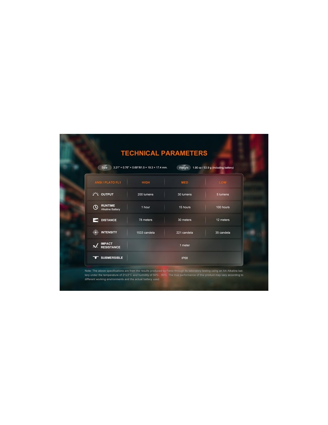Un LED Luminus SST20 con una vida útil de 50.000 horas. Fenix no ofrece servicios de sustitución de LED por el momento, y no se recomienda a los usuarios sustituir los LED de forma independiente, ya que podría afectar al rendimiento del producto y causar daños en el mismo.