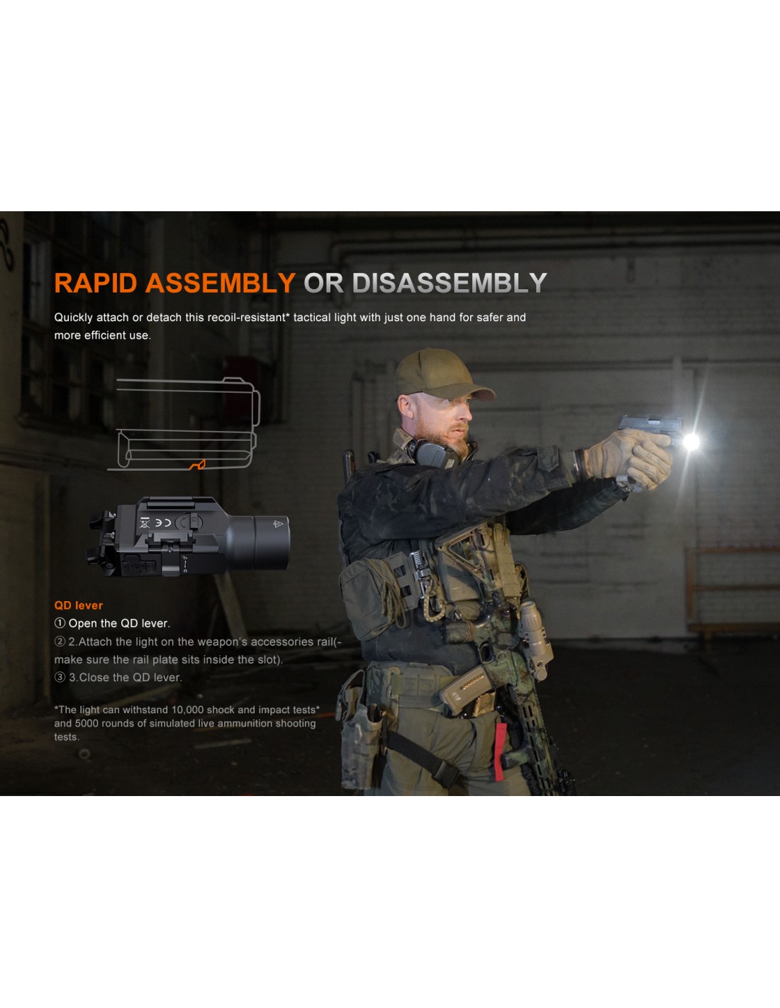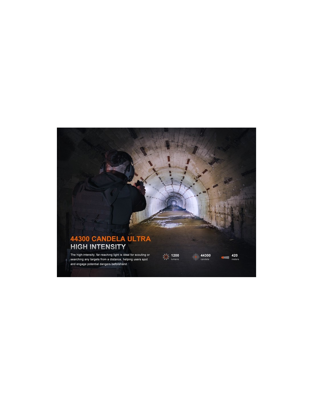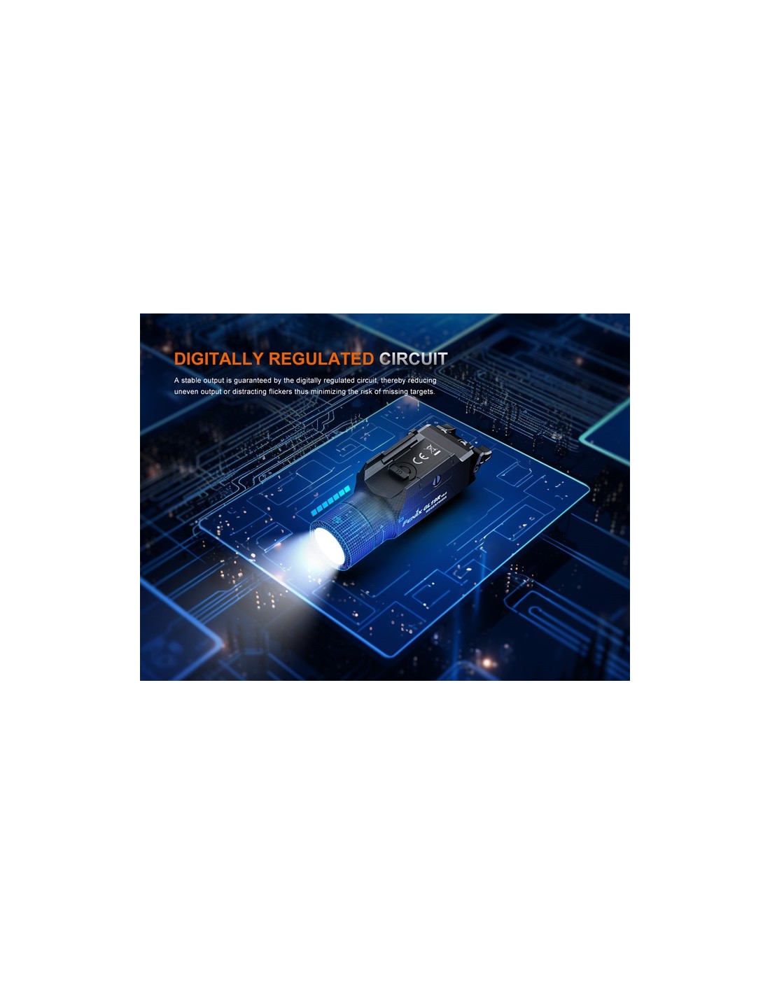 Diseñada para profesionales que realizan un uso intensivo, la nueva linterna táctica Fenix GL19R V2.0 para montar sobre armas, ofrece una asombrosa luz blanca de 44300 candelas de gran brillo, con una potencia de 1200 lúmenes, ofreciendo un haz de luz de hasta 240 metros con un punto de luz muy eficaz. Es ideal para realizar maniobras e identificar amenazas a distancia. Con un interruptor ambidiestro, es posible controlar sin esfuerzo la activación momentánea o constante, con un solo dedo. El modo estroboscópico se puede activar presionando prolongadamente con la luz encendida para mantener siempre el control de la situación.