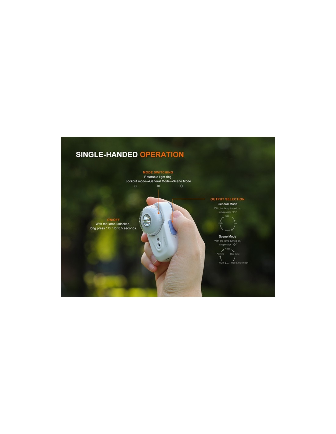 Con iluminación blanca en cuatro niveles y cinco modos atmosféricos de luz ambiente (incluyendo luz roja, destellos rojo/azul, modo RGB y efecto aurora), esta linterna es ideal tanto para actividades prácticas como para ambientes creativos o de señalización. Su sensor de gestos permite encenderla o apagarla con un gesto de mano, mientras que sus interruptores electrónicos y anillo ajustable ofrecen un uso sencillo con una sola mano, incluso con guantes puestos. Su resistencia al agua y al polvo (certificación IP66) y su durabilidad ante impactos de hasta 1 m garantizan un rendimiento fiable en condiciones exigentes.