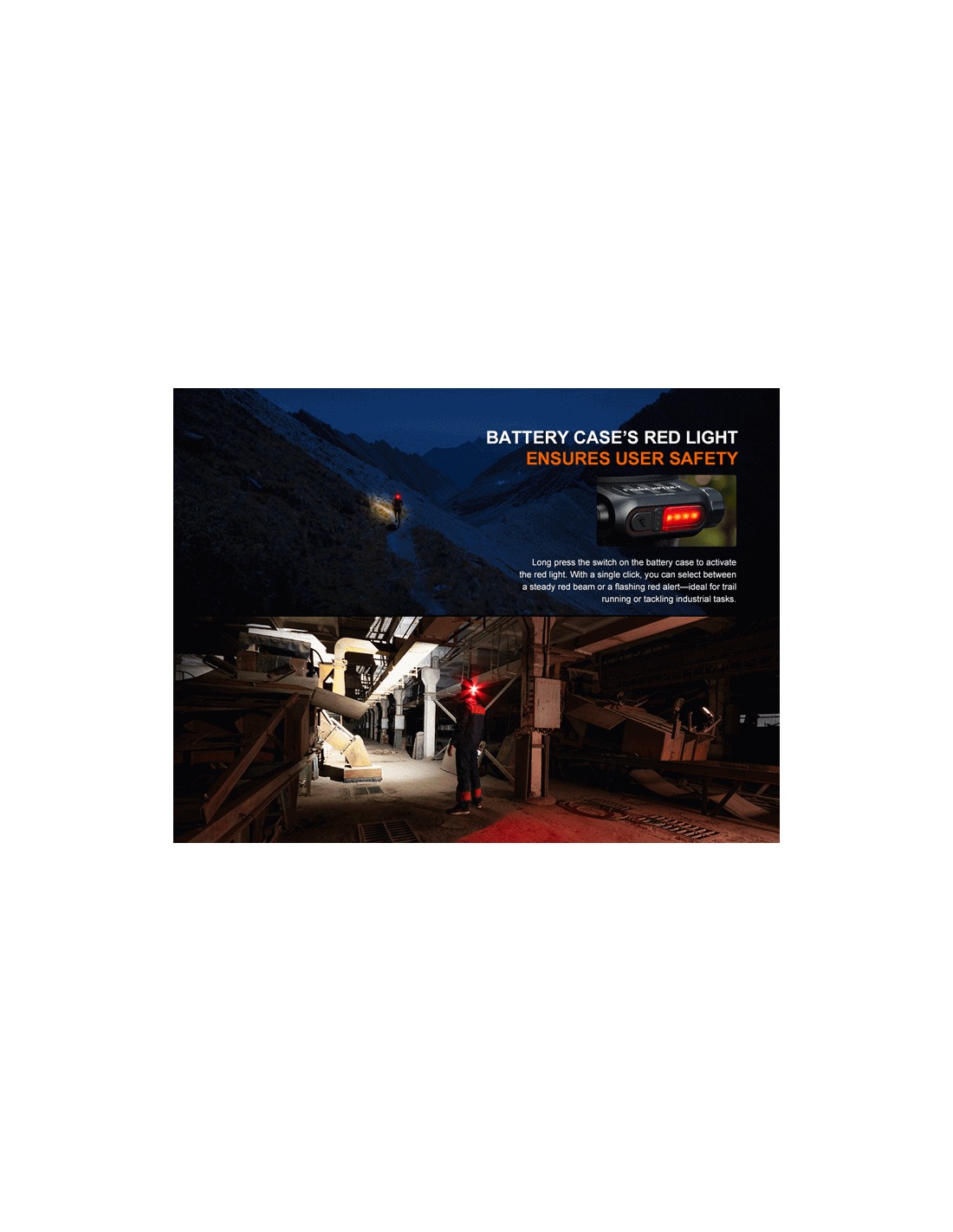 Su diseño con interruptores duales permite ajustar de forma rápida y precisa tanto las fuentes de luz como los niveles de brillo. Además, el compartimiento de batería incluye una luz roja de seguridad, perfecta para alertar y proteger al usuario durante actividades nocturnas al aire libre. Funciona con una batería reemplazable de 4000 mAh (incluida), compatible con carga USB Tipo-C, lo que facilita su uso en movimiento. Con certificación IP66 de resistencia al agua y resistencia a impactos de hasta 2 metros, la Fenix HP12R-T está hecha para durar.