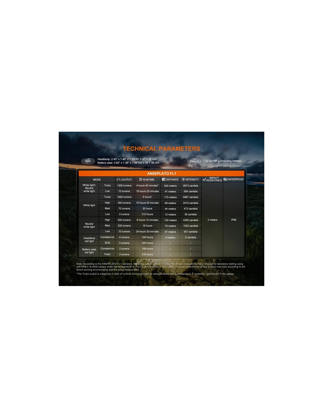 - 1300 lúmenes de salida máxima y alcance de hasta 200 metros
