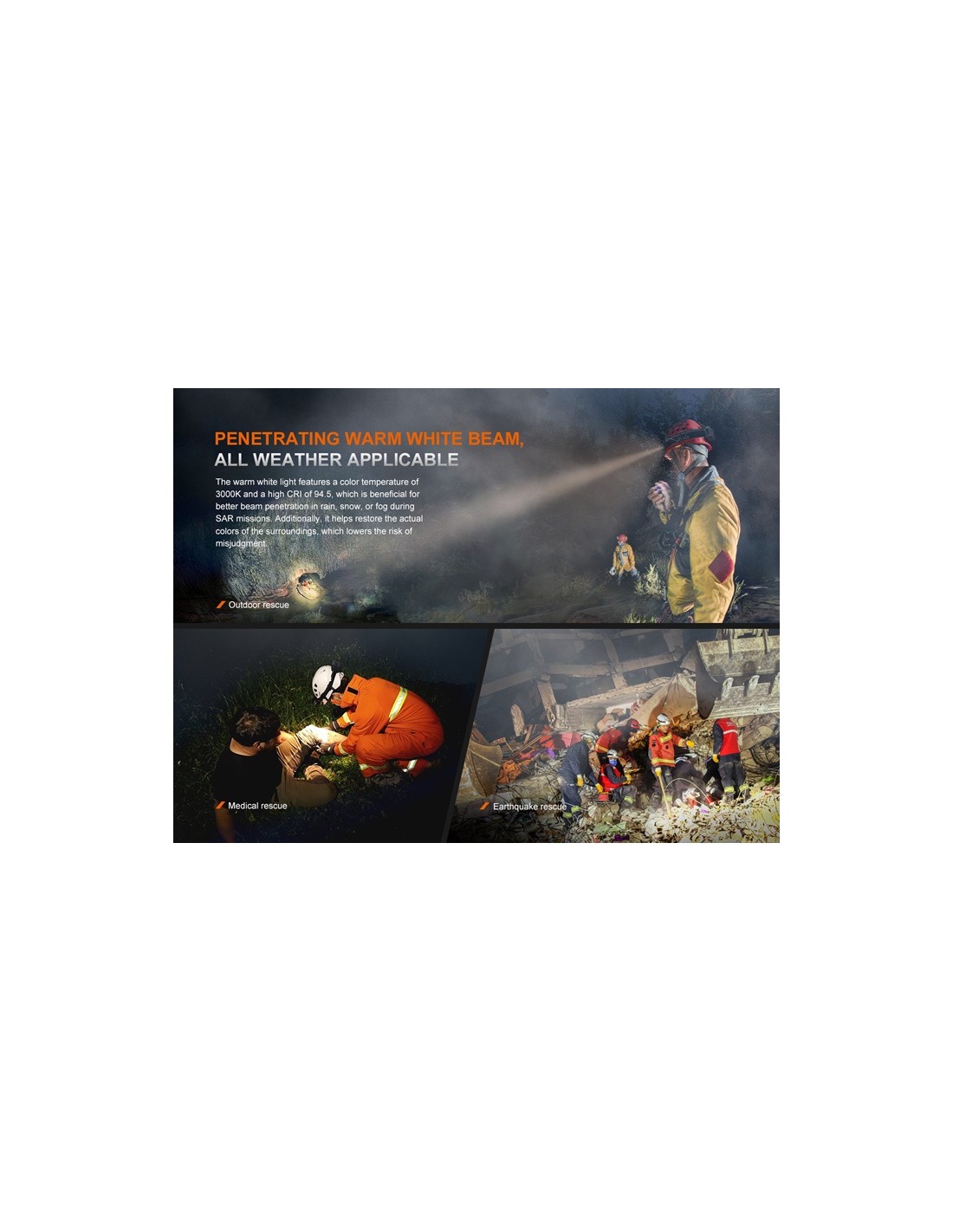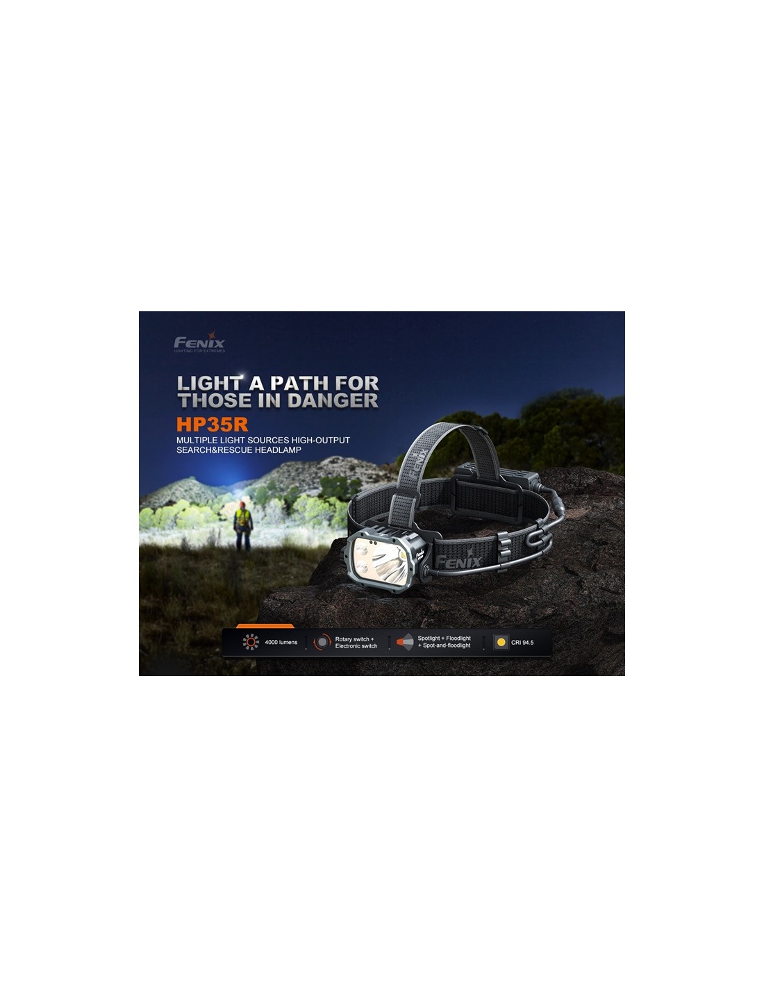 La Fenix HP35R es una linterna frontal de búsqueda y rescate de alto rendimiento con múltiples fuentes de luz. Esta linterna frontal está disponible únicamente en la versión HP35R, la versión HP35R SAR temporalmente no lo está.