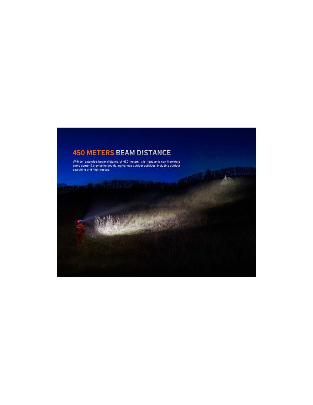 - Distancia de haz extendida de 450 metros para las necesidades de iluminación en búsqueda, rescate, exploración y otras actividades al aire libre que requieren un mayor nivel de profesionalidad.