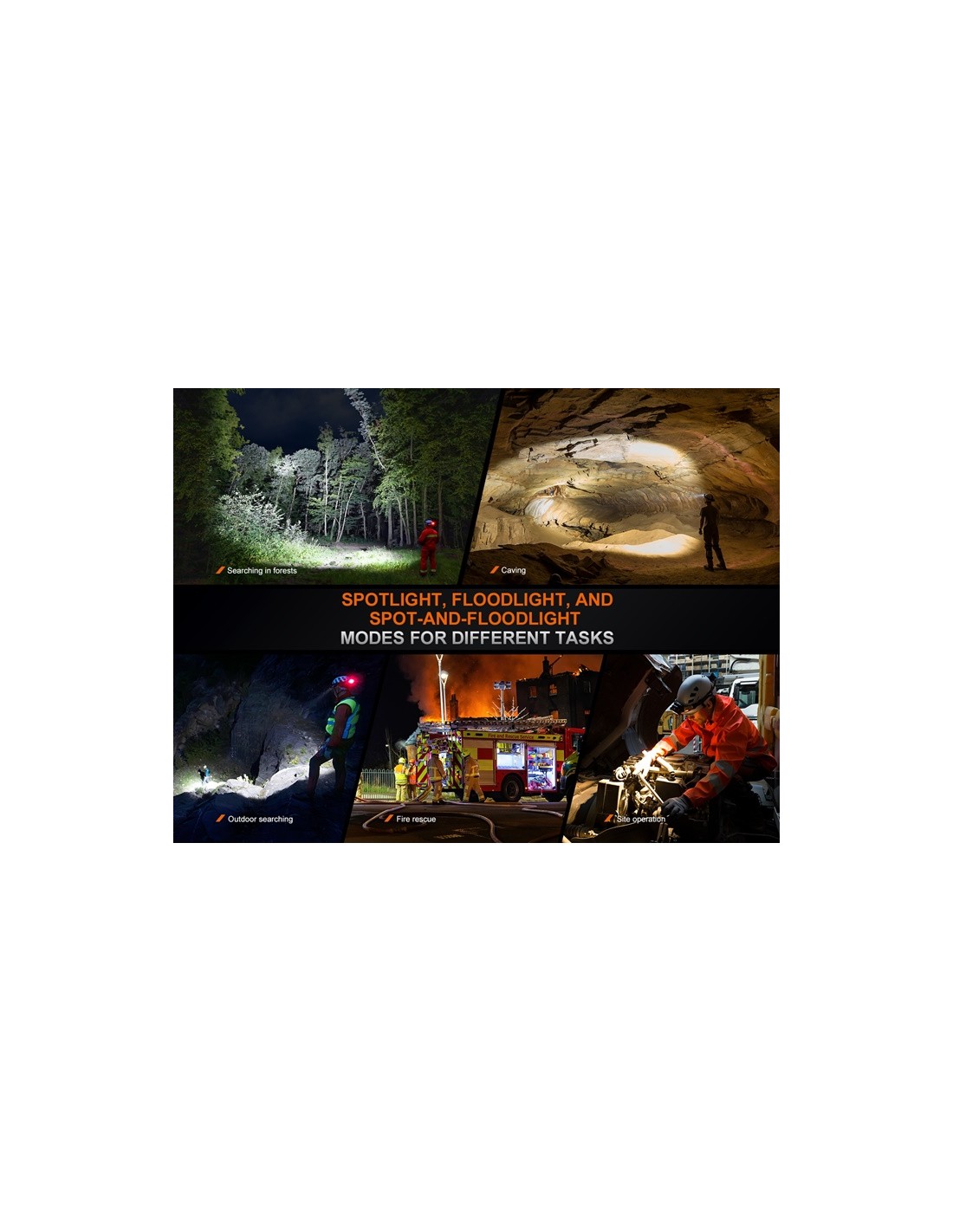 La nueva Fenix HP35R es una linterna frontal especializada en búsqueda y rescate de separación avanzada, que puede proporcionar hasta 4000 lúmenes de luz, con una distancia de haz máxima de 450 metros. Es una solución versátil y fiable para quienes necesitan una iluminación potente en entornos difíciles. Las dos baterías de 5000 mAh integradas en el estuche, ofrecen una autonomía ultralarga de hasta 500 horas y pueden cargar otros dispositivos digitales. Los usuarios pueden cambiar fácilmente entre tres modos y seleccionar entre cuatro niveles de brillo de cada modo mediante el interruptor giratorio y el interruptor electrónico. El frontal cuenta con una combinación de foco, reflector y foco y reflector, mientras que la funda de la batería incluye una luz roja para alertar y preservar la visión nocturna. El excelente funcionamiento de la Fenix HP35R la hace ideal para búsqueda y rescate, patrulla, espeleología y otras operaciones de alta intensidad en exteriores.
