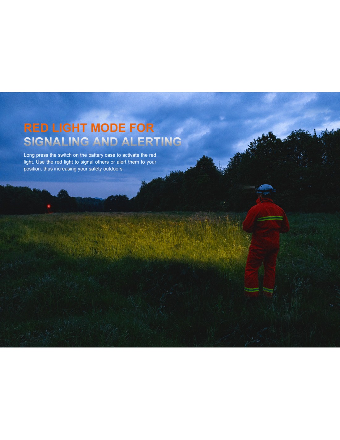 - Protección inteligente contra sobrecalentamiento: La linterna acumula mucho calor cuando se utiliza a altos niveles de potencia durante periodos prolongados. Cuando el frontal alcanza una temperatura de 60°C/140°F o superior, esta se reducirá automáticamente algunos lúmenes para reducir la temperatura.