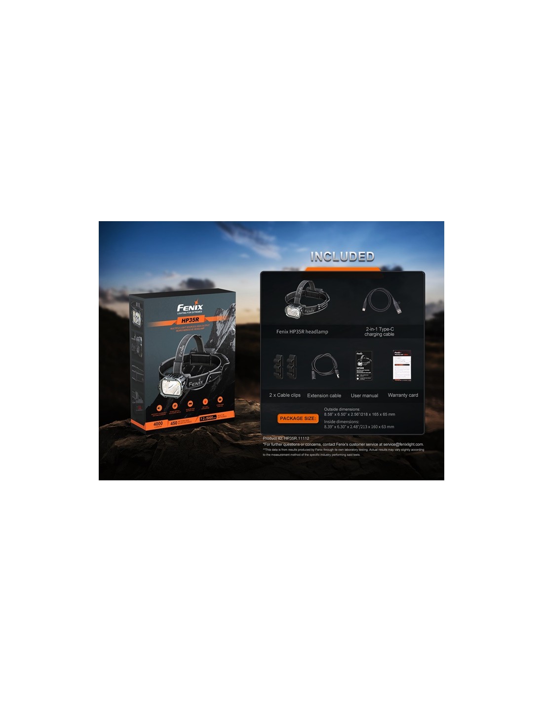 - Además, la linterna frontal HP35R y su carcasa de batería incorporan soportes de estilo abierto que garantizan la compatibilidad no solo con el accesorio para linterna frontal Fenix ALG-03 V2.0 y el clip para casco Fenix ALG-04, sino también con una amplia gama de tipos de cascos.