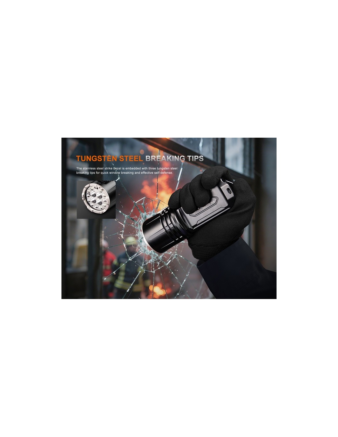 Fabricada con aluminio anodizado tipo HAIII de alta resistencia, cuenta con protección IP68, capacidad de impacto desde 1,5 m y un bezel metálico con puntas rompedoras de cristal para situaciones de rescate. Está alimentada por dos baterías 21700 de 6000 mAh que ofrecen hasta 135 h de autonomía, carga rápida USB‑C (soporta 18 W tanto para cargar como para servir de powerbank) y doble sistema de bloqueo para evitar activaciones accidentales