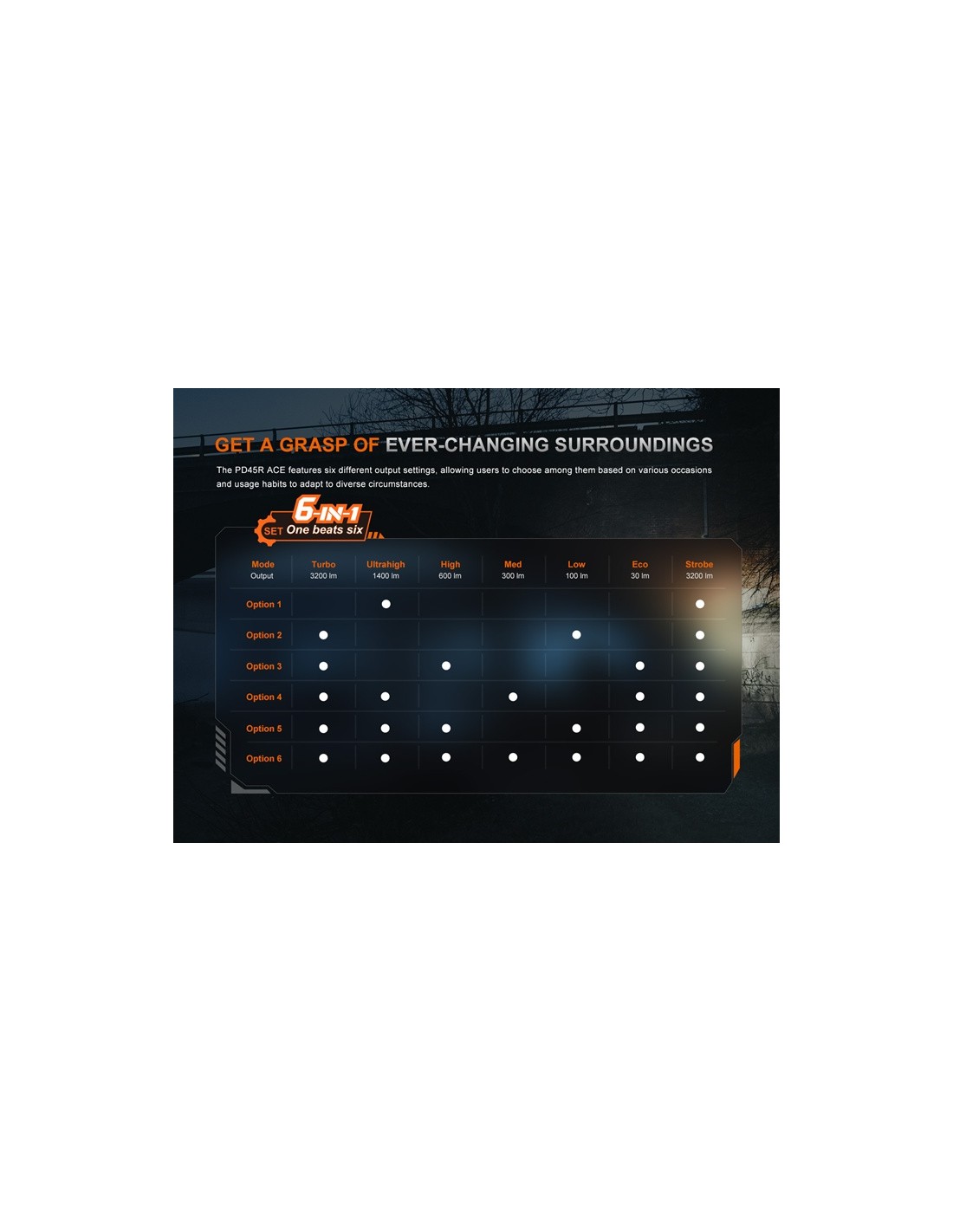 La nueva Fenix PD45R ACE es una linterna táctica multimodal extraordinaria, compacta y de gran potencia.