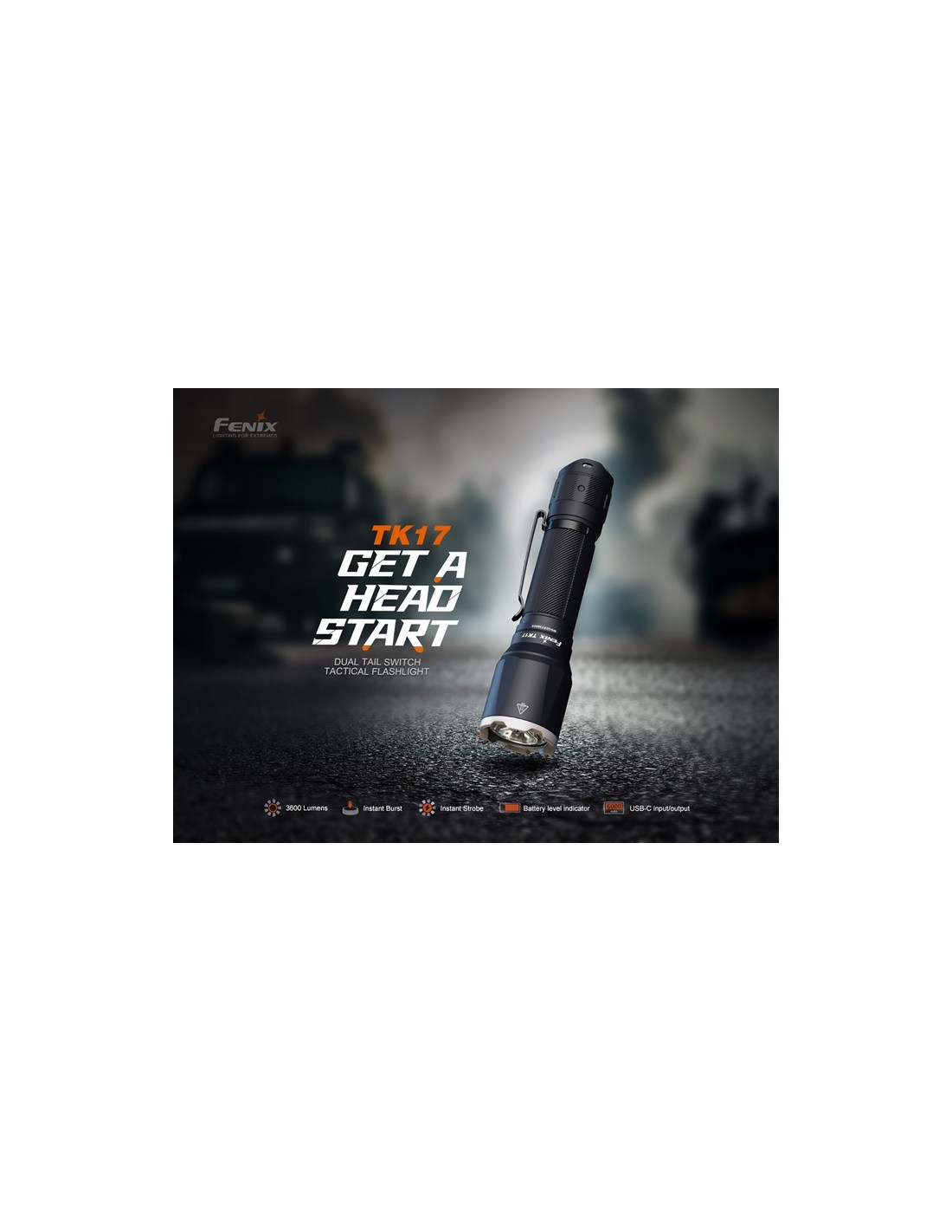 La Fenix TK17 es una linterna táctica con interruptor dual en la cola. Sus características principales incluyen: