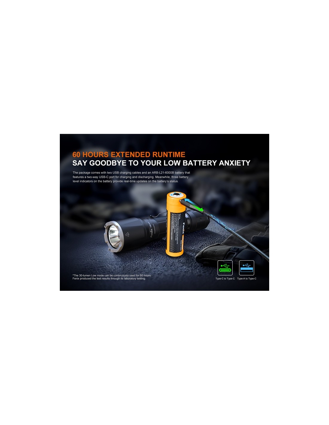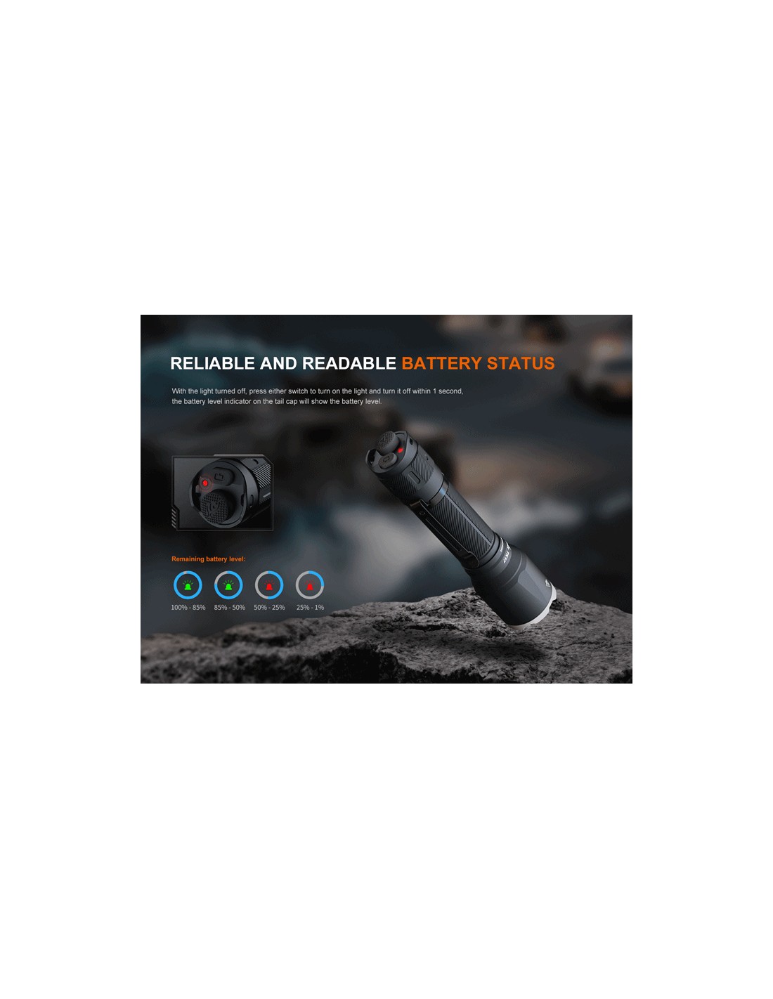 - Incluye una batería Fenix ARB-L21-6000B que cuenta con un puerto USB-C bidireccional para carga y descarga.