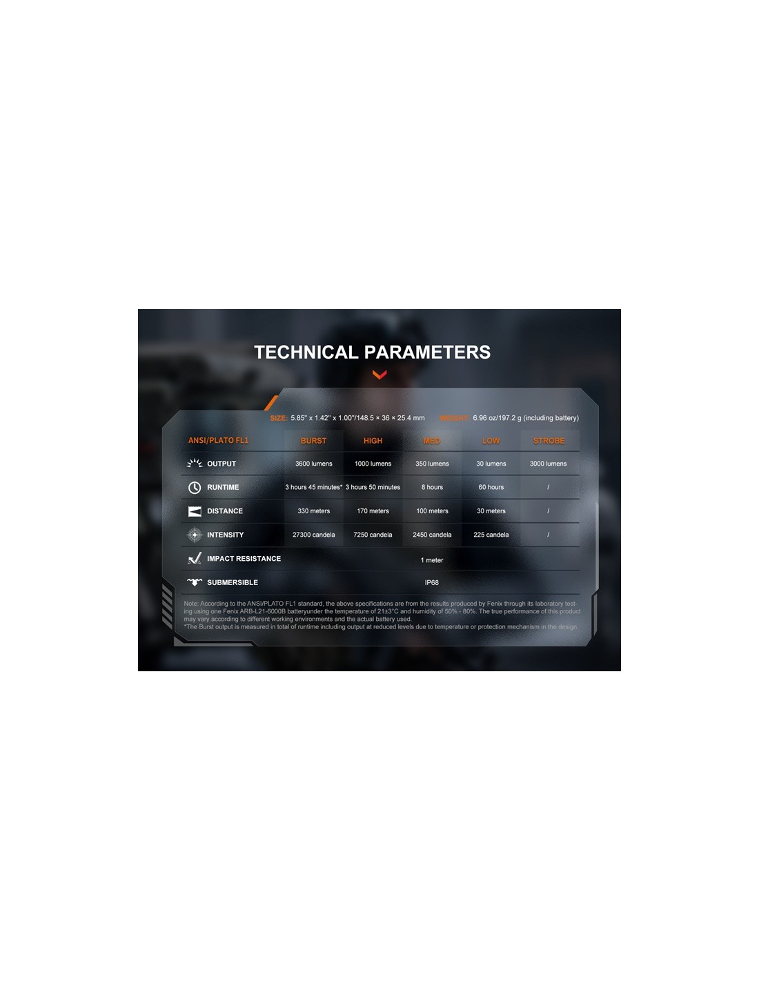 Utiliza un LED CREE XHP50.3 HD con una vida útil de 50,000 horas. Actualmente, Fenix no proporciona servicios de reemplazo de LED, y no se recomienda que los usuarios reemplacen el LED por su cuenta, ya que podría afectar el rendimiento y causar daños al producto.