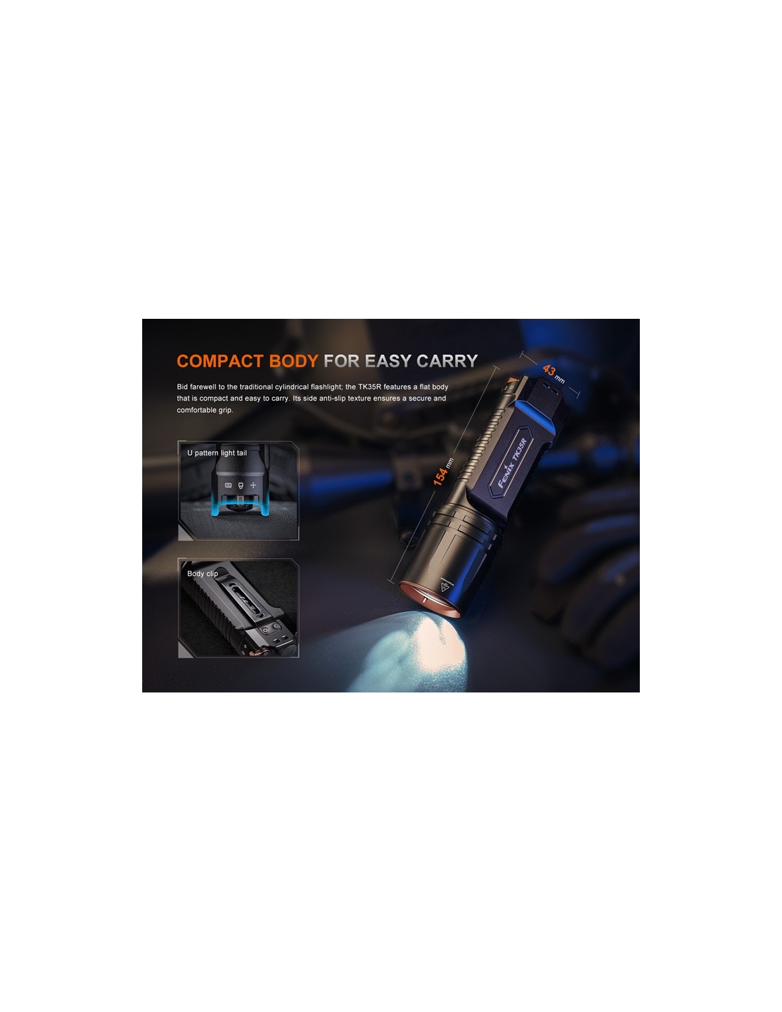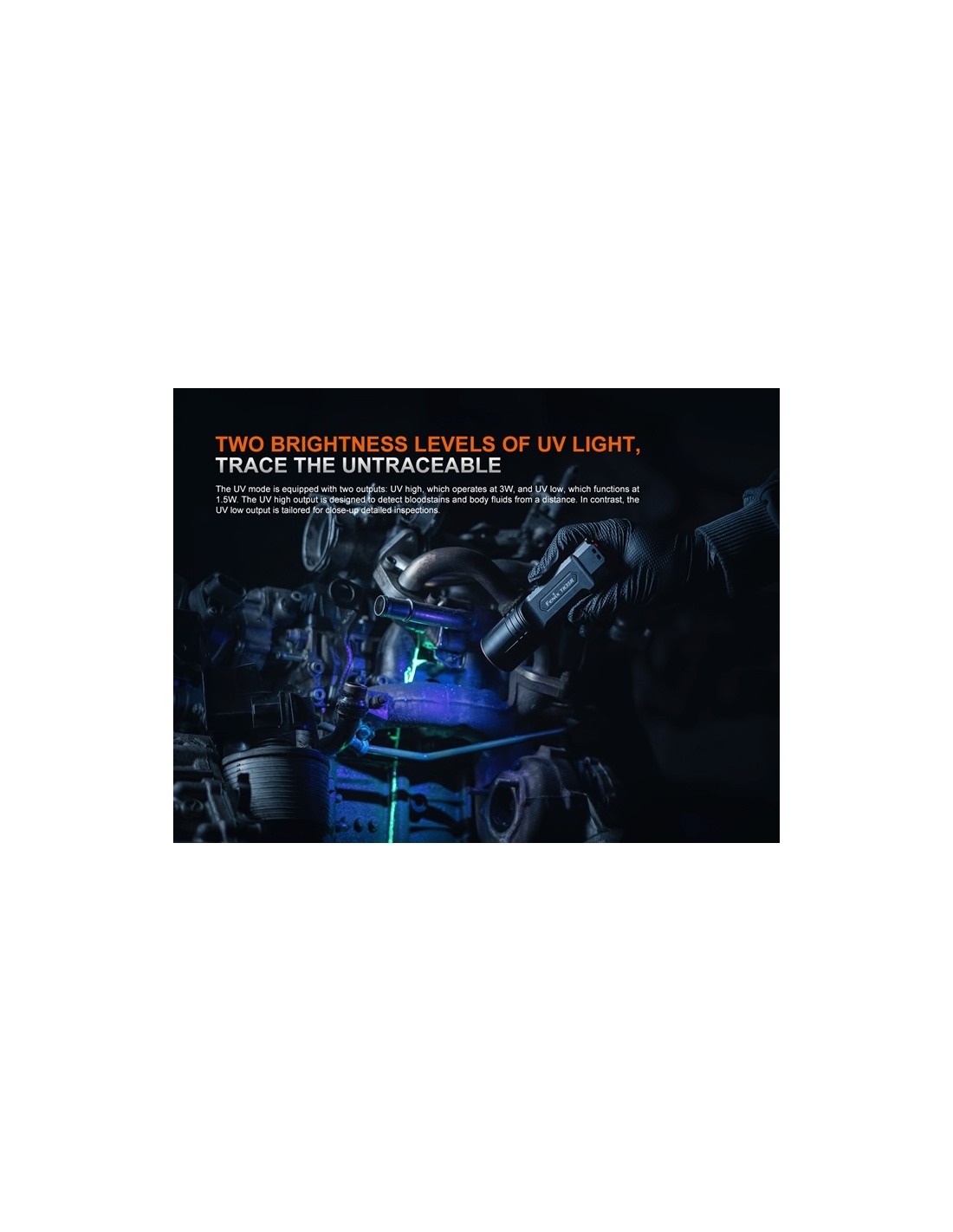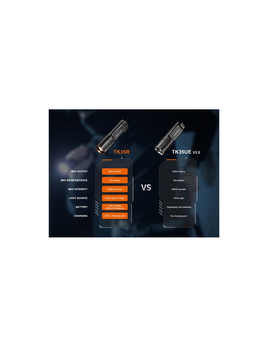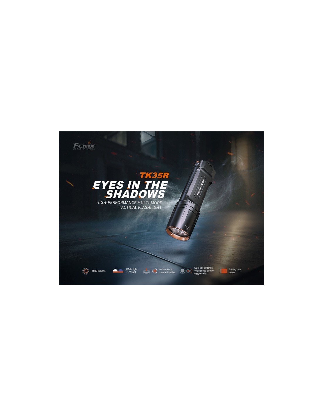 La nueva Linterna Fenix TK35R invita a desbloquear 5800 lúmenes de impresionante claridad y un alcance de hasta 610 metros. Una linterna táctica potente y confiable de alto rendimiento. Además incluye una luz UV profesional integrada gracias a su LED UV incorporado.