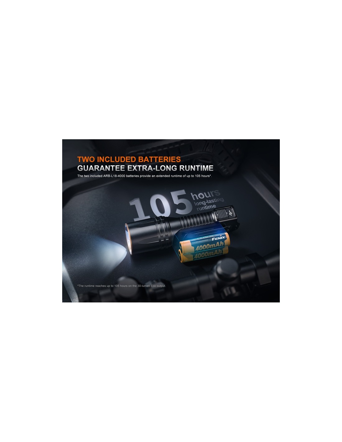 - Alimentada por dos baterías Fenix ARB-L18-4000 (incluidas).